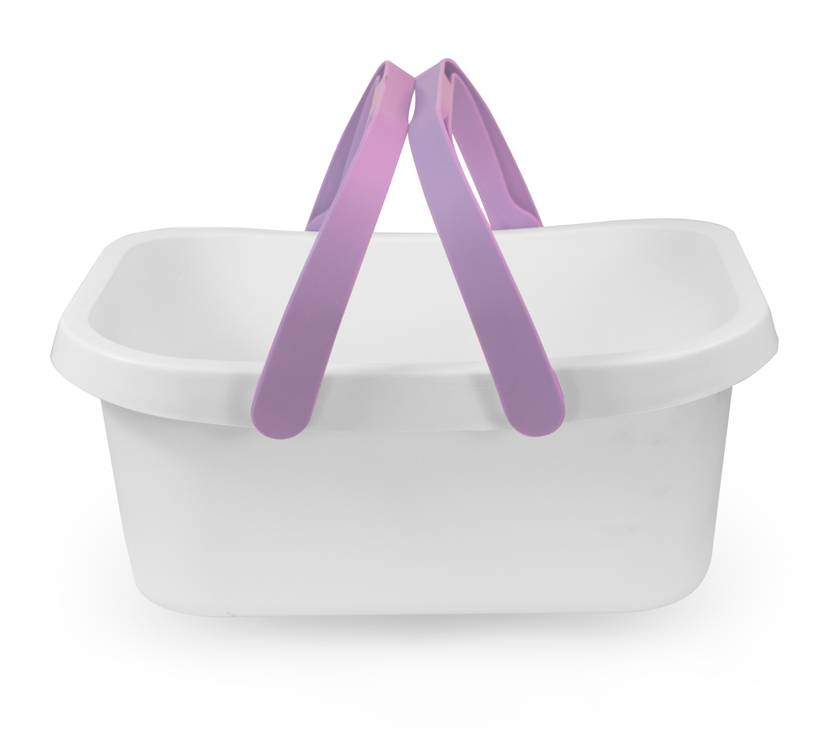 White rectangular basin with colored handles from the Love line. A line created thanks to the philosophy of recycled and imperfection given by the past. Careful design and soft lines with colorful details suitable for all tastes. The LOVE rectangular basin is ideal for sorting clean and dirty clothes at home or at the laundry. Made of resistant polypropylene, easy to clean and can contain up to 22.5 litres, “Made in Italy” product. The basin with resistant colored handles is ideal for carrying wet laundry and can be used to soak clothes.