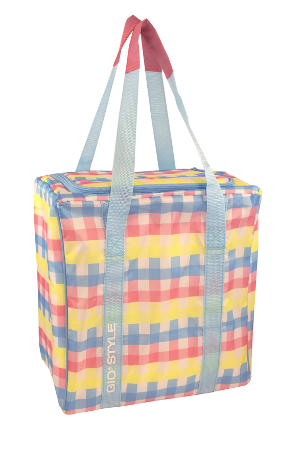 Borsa termica Fiesta Vetical in poliestere 70D. Apertura ad U per facilitare l’ingresso e la presa dei prodotti.